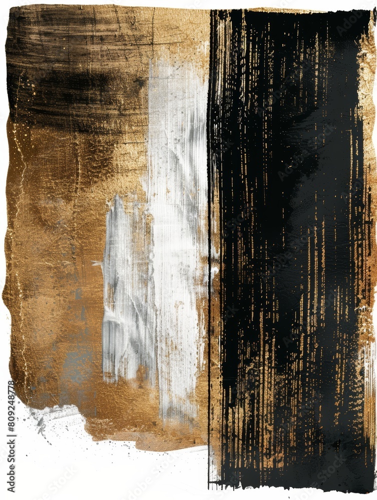 A Painting Featuring Black And Gold Colors, Set Against A White Background
