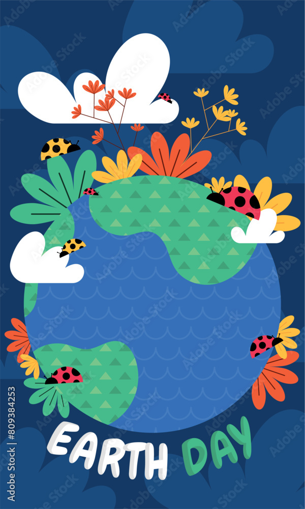 Geometric Earth Day Card Ladybugs And Flowers Vector Wallpaper Mural - Decorly Solutions | Decorly Solutions