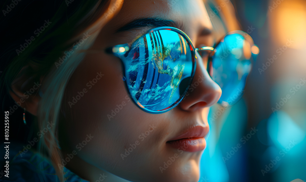 Woman Wearing Blue Sunglasses And Looking Away Wallpaper Mural - Decorly Solutions | Decorly Solutions