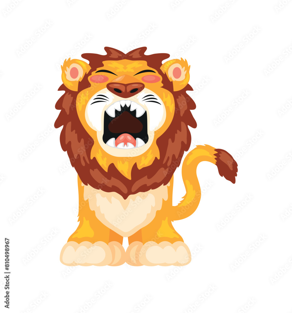 Angry Cartoon Lion Roaring Loudly With Fierce Eyes In Wild Jungle Themed Vector Illustration