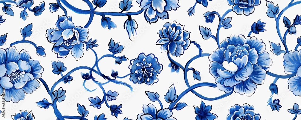 Watercolor Seamless Pattern With Blue And White Wallpaper Mural - Decorly Solutions | Decorly Solutions