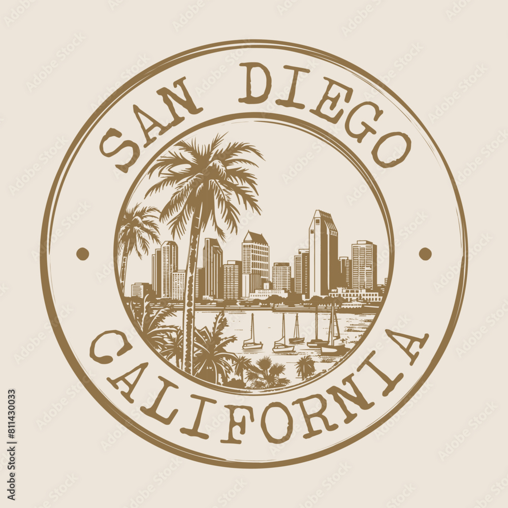 San Diego California Stamp City Postmark Silhouette Postal P Wallpaper