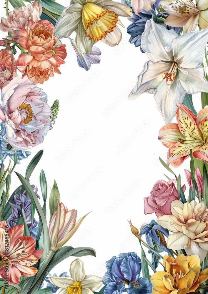 Colorful floral wreaths with a cute bear illustration, white isolate background.