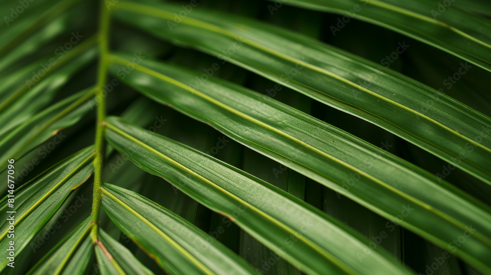 Close up of a natural tropical green palm leaf texture, botanic, detail