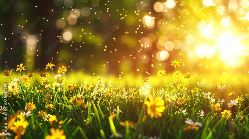 Vibrant meadow filled with blooming flowers during a sunny spring day