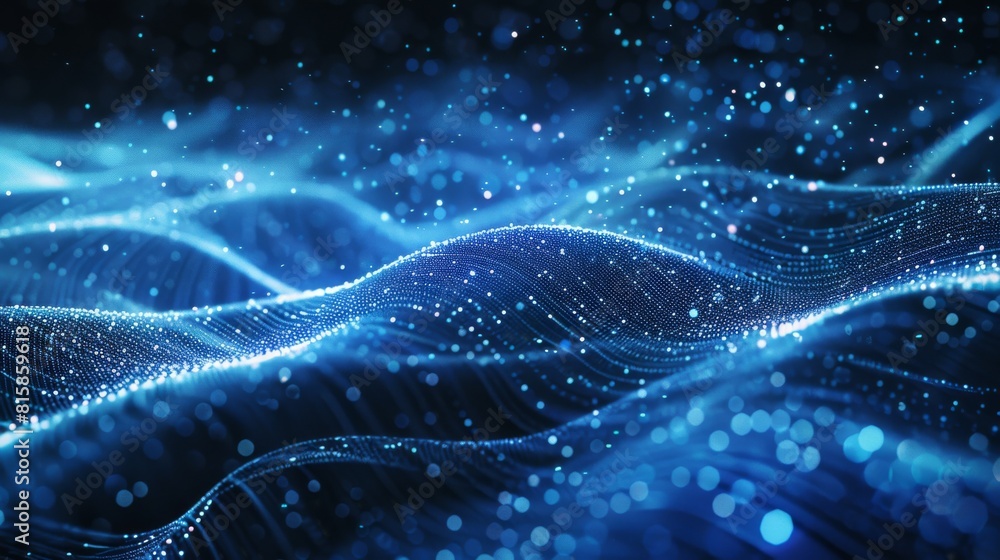 A Digital Blue Waveform With Glowing Lines And Dots On A Dark Background