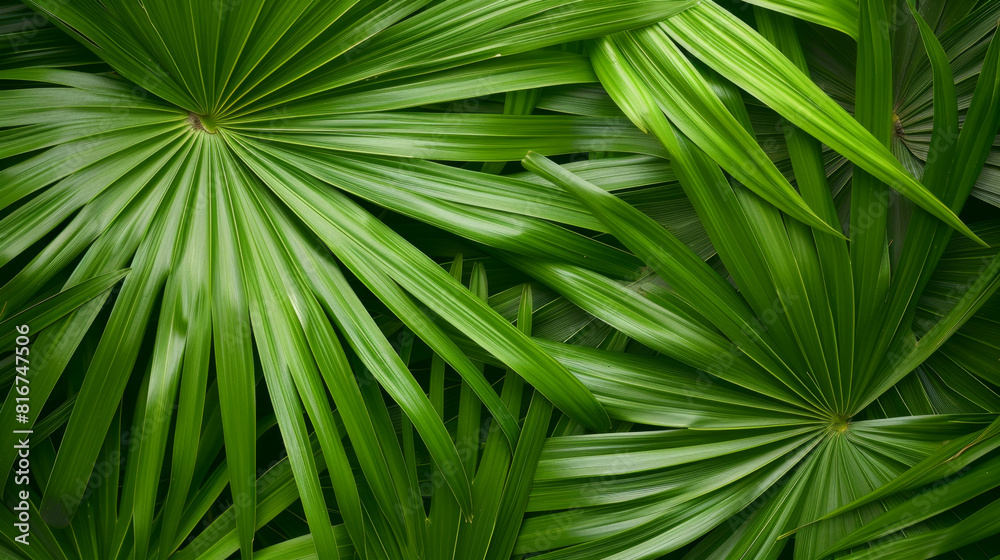 Lush Green Palm Leaves Tropical Foliage Natural Texture Background