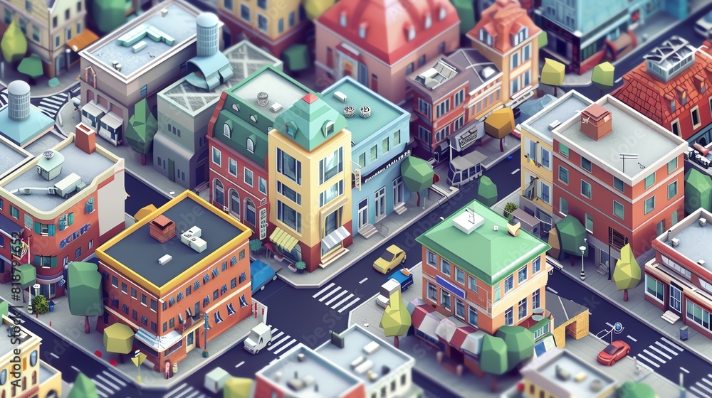 City Town Street Isometric Design An Illustration In Wallpaper Mural - Decorly Solutions | Decorly Solutions