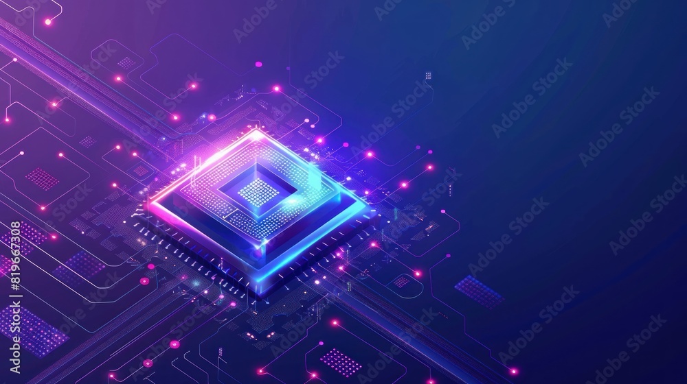 Futuristic Microchip With Blue Lights And Effects Database Wallpaper Mural - Decorly Solutions | Decorly Solutions