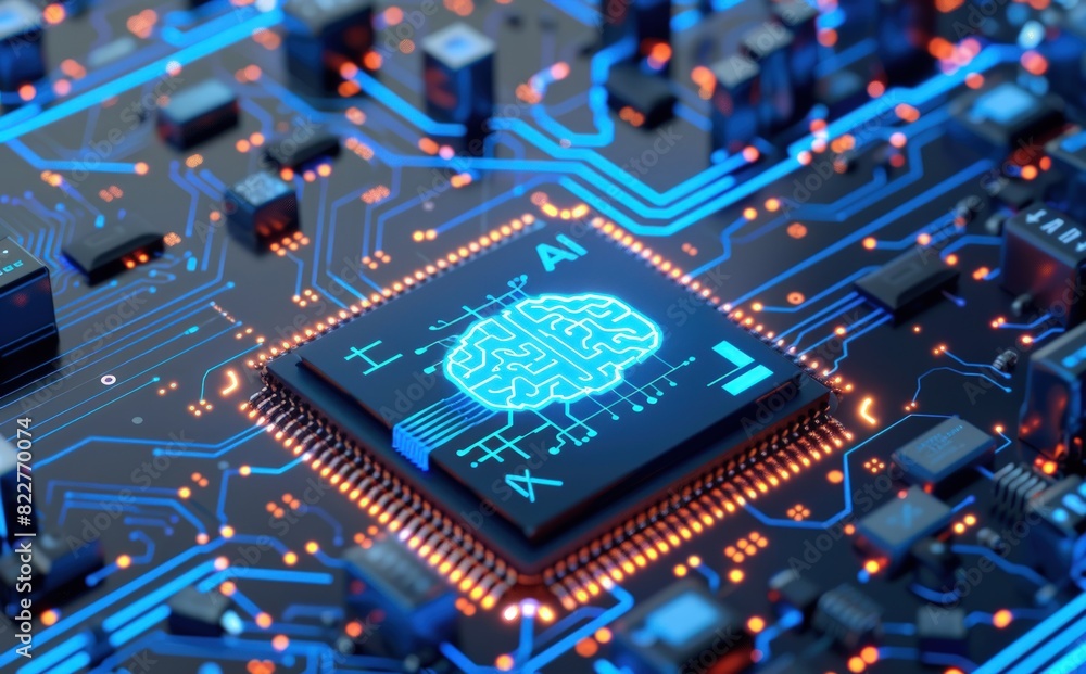 3d Render Of A Chip With A Brain Wallpaper Mural - Decorly Solutions | Decorly Solutions