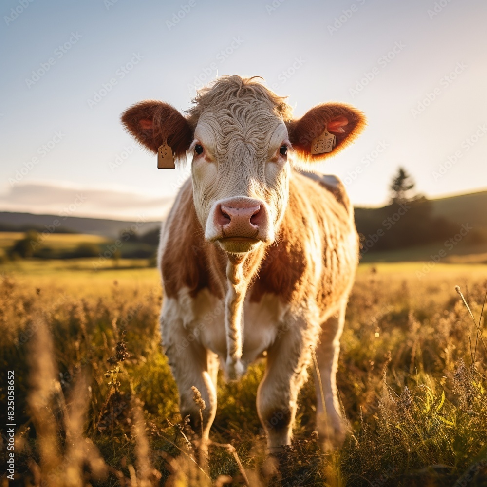Young Cow Standing In A Sunlit Field Captured Wallpaper Mural - Decorly Solutions | Decorly Solutions