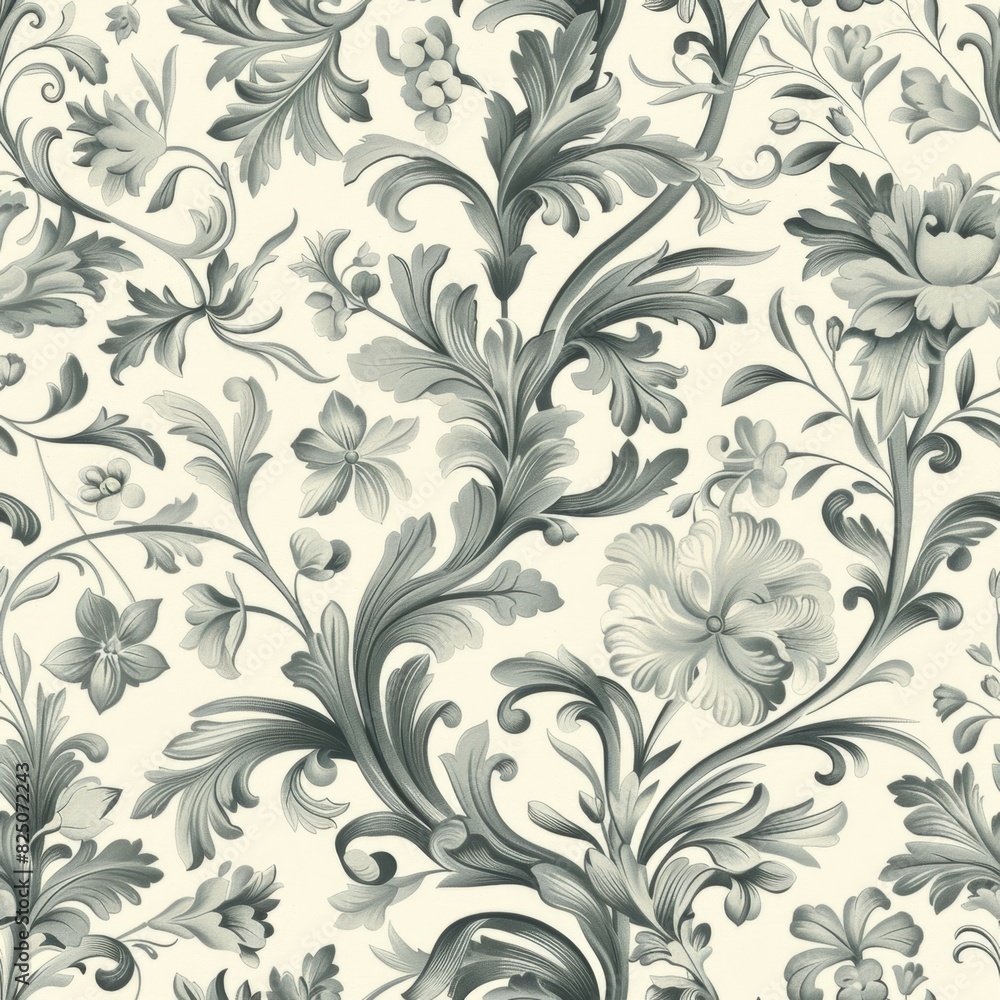 Rococo Style Seamless Pattern With Delicate Florals And Wallpaper Mural - Decorly Solutions | Decorly Solutions