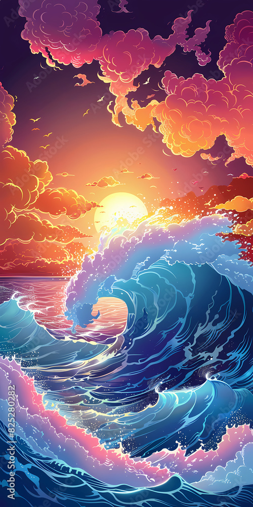 Colorful Sunset Sky And Surrealistic Waves Wallpaper Mural - Decorly Solutions | Decorly Solutions