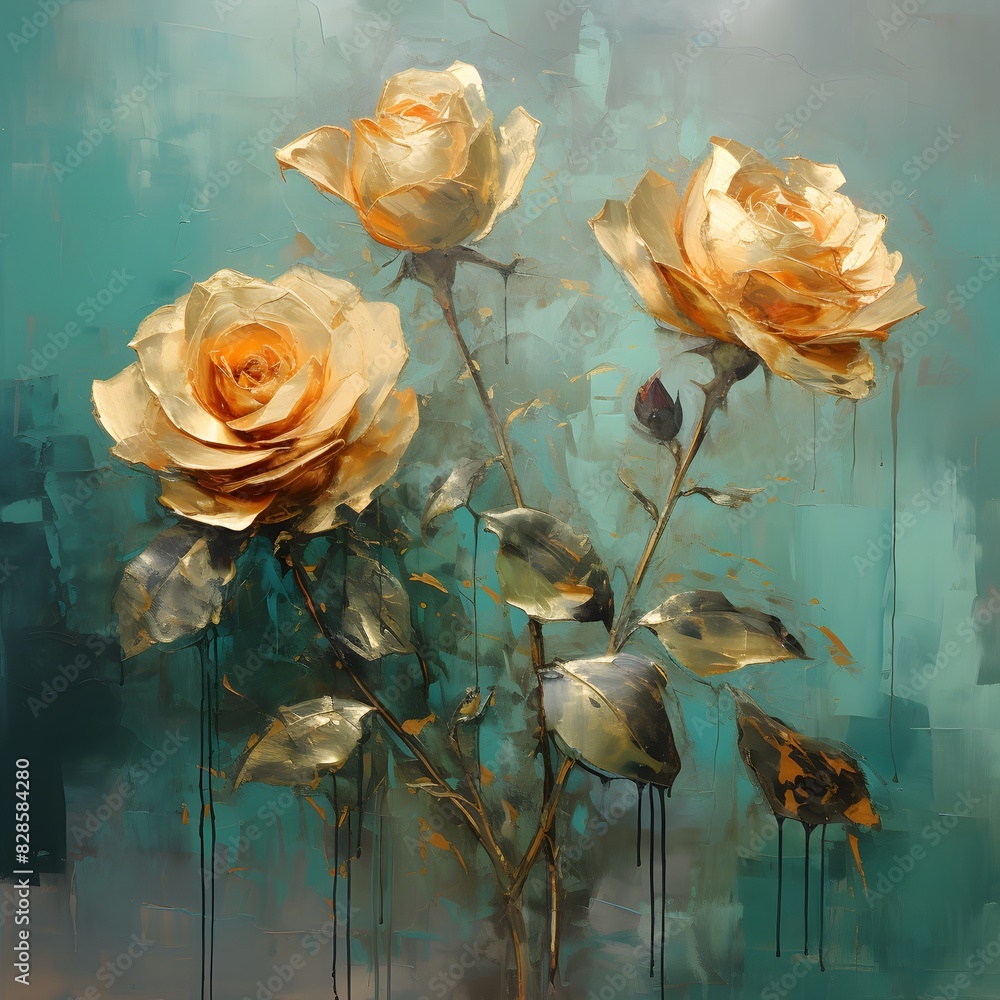 Vintage background with oil painting roses Wallpaper