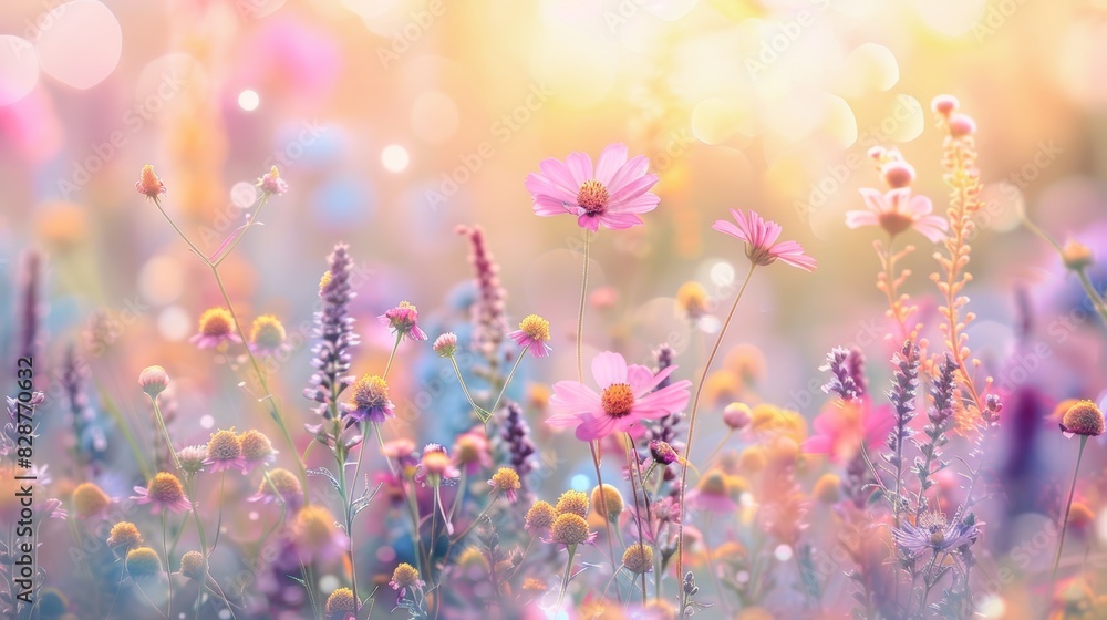 Vibrant Field Of Cosmos Flowers Bathed In Golden Wallpaper Mural - Decorly Solutions | Decorly Solutions