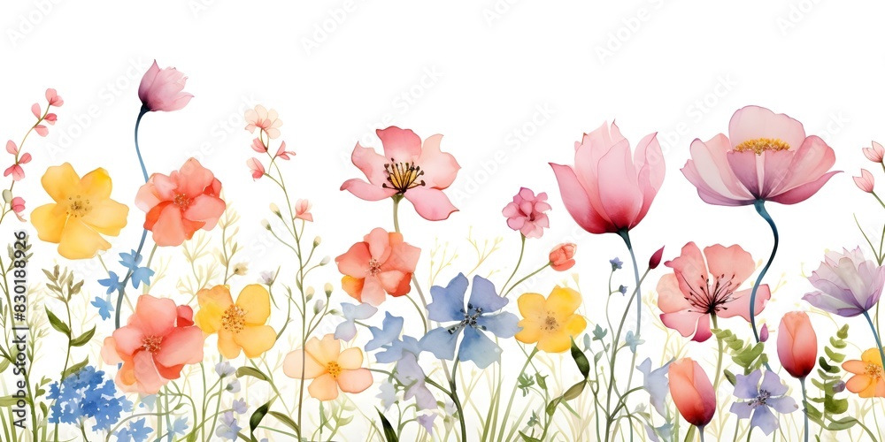 Watercolor Flower Border On White Background Ideal For Wallpaper Mural - Decorly Solutions | Decorly Solutions