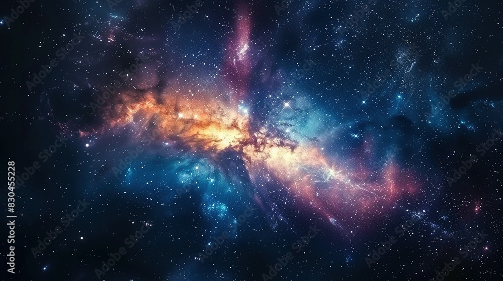 Stunning Cosmic Explosion in Deep Space With Vibrant Colors of Orange, Pink, and Blue Nebula