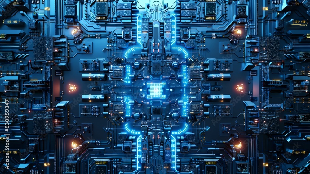 Futuristic Circuit Board Featuring Glowing Blue Neon Lights Wallpaper Mural - Decorly Solutions | Decorly Solutions
