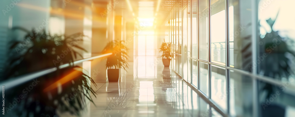 Blurred Defocused Sunlight In Modern Office Hallway With Wallpaper Mural - Decorly Solutions | Decorly Solutions