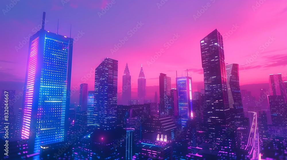 A Neon Cityscape At Twilight Where Data Highways Wallpaper Mural - Decorly Solutions | Decorly Solutions