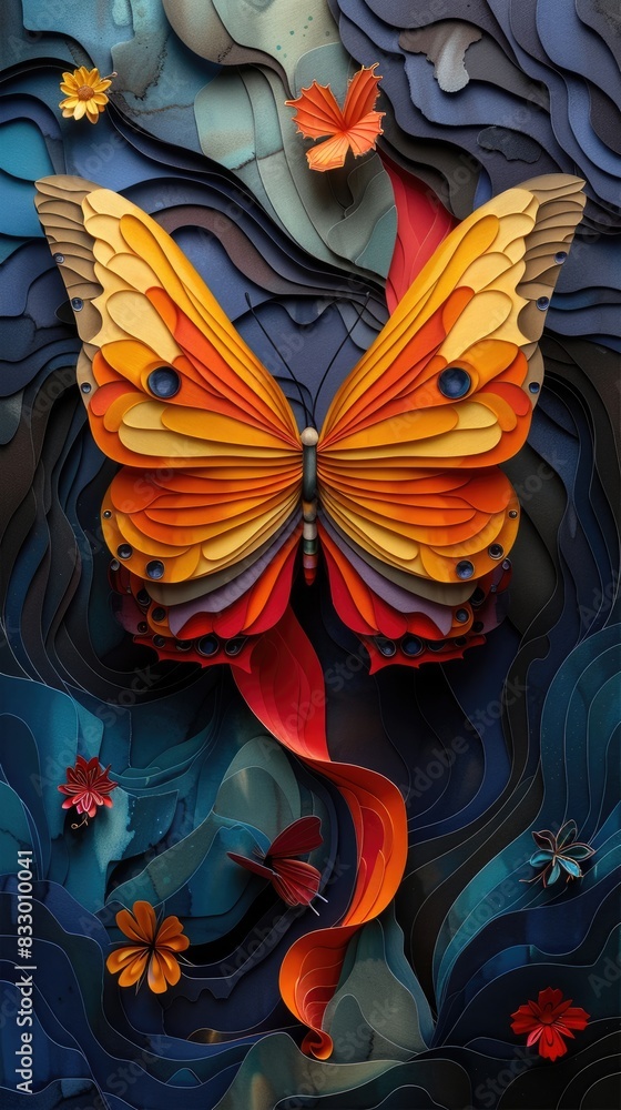 Exquisite Craftsmanship Colorful Butterfly And Flower Organic Paper Wallpaper Mural - Decorly Solutions | Decorly Solutions