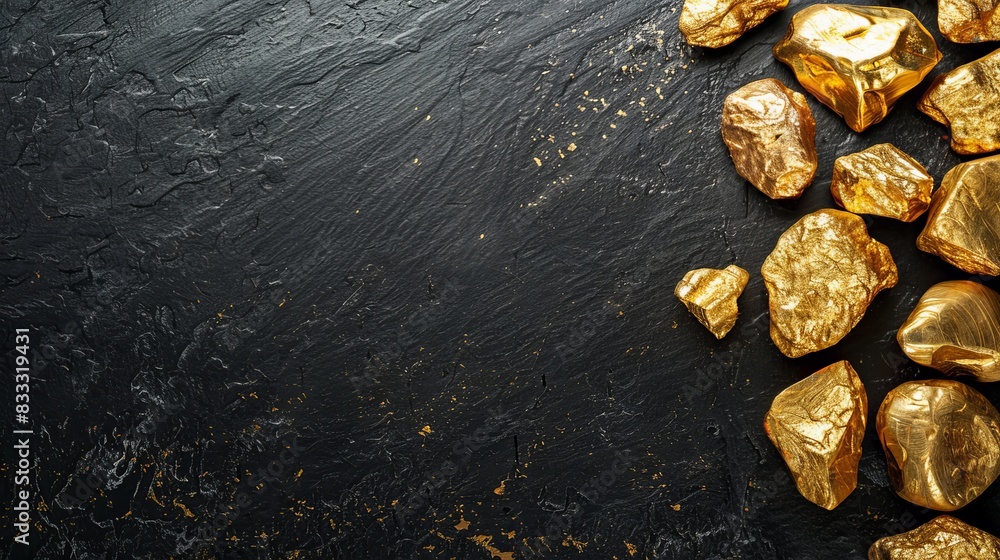 Gold Nuggets And Ingots Arranged On A Black Wallpaper Mural - Decorly Solutions | Decorly Solutions