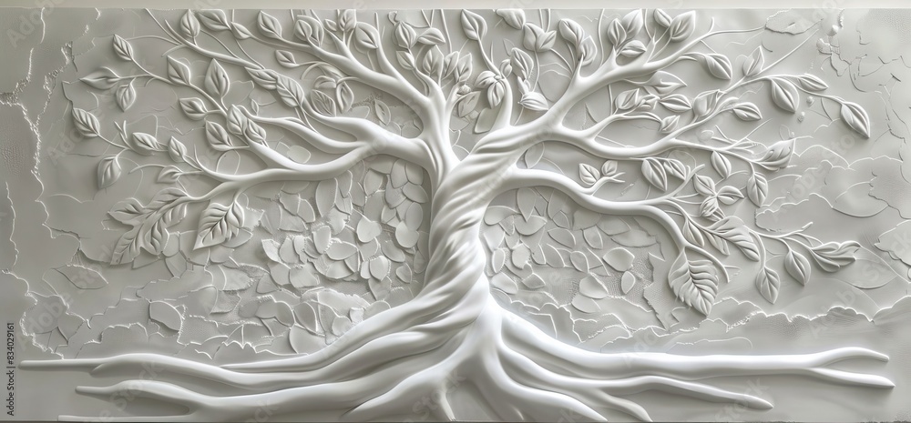 3d Relief White Tree Wallpaper Mural Wall. Ai Generated Illustration