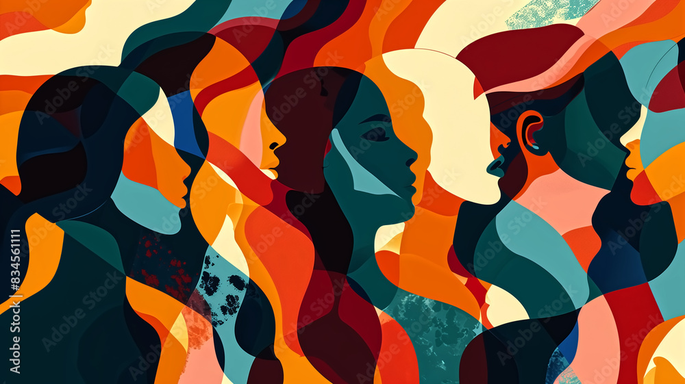 Abstract Illustration Of Diverse Female Silhouettes In Vibrant Wallpaper Mural - Decorly Solutions | Decorly Solutions