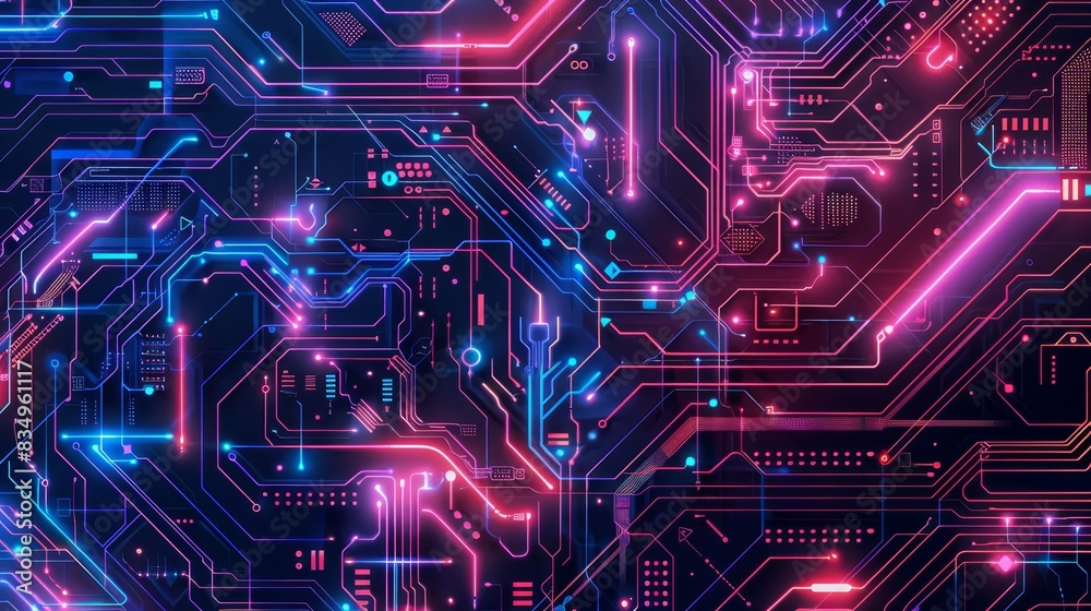 Futuristic Circuit Board Design With Vibrant Neon Lights Wallpaper Mural - Decorly Solutions | Decorly Solutions
