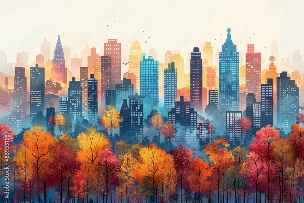 A Striking City Skyline Transitions From A Forest Wallpaper Mural - Decorly Solutions | Decorly Solutions
