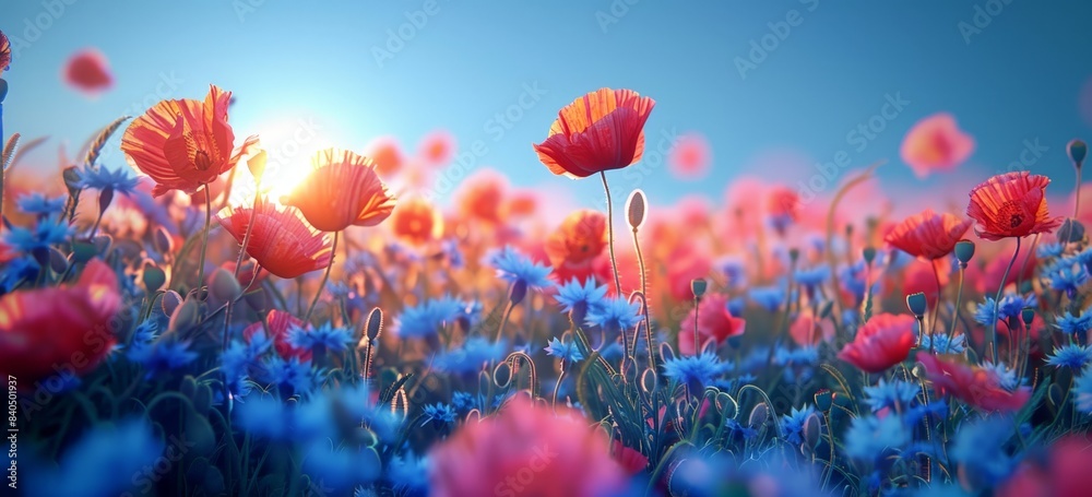 Vibrant Flower Field at Sunrise - Stunning Nature Photograph Wallpaper