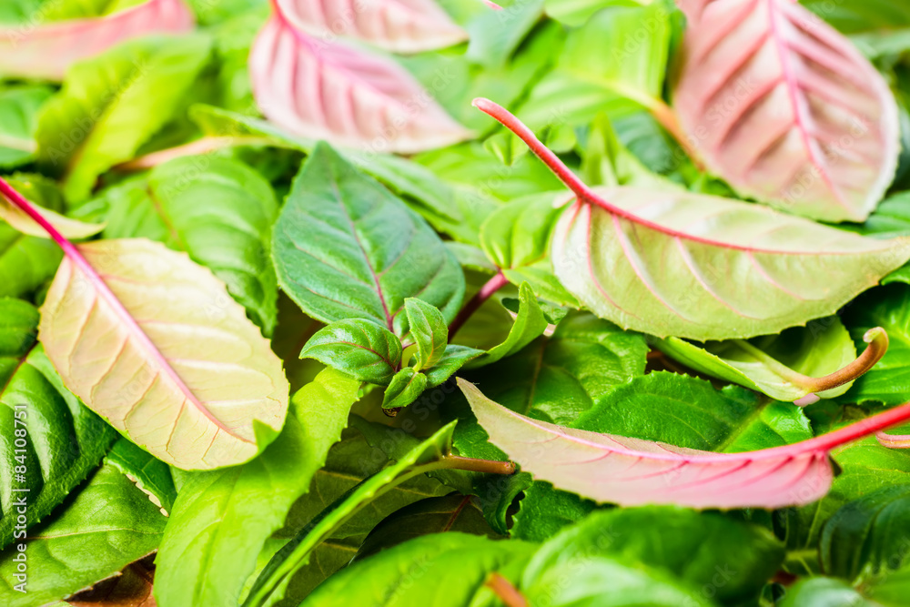 Background Of Green And Red Leaves Fuchsia Closeup Wallpaper Mural - Decorly Solutions | Decorly Solutions