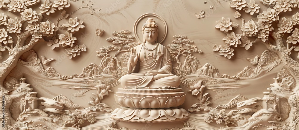3d Hindu ancient religious buddha Wallpaper Background golden art for digital printing wallpaper, mural, custom design wallpaper. AI generated illustration