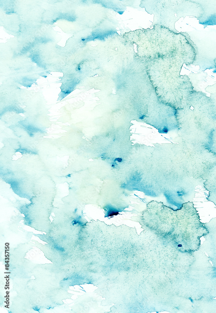Abstract blue watercolor texture with soft, cloud-like patterns and varying shades of blue.