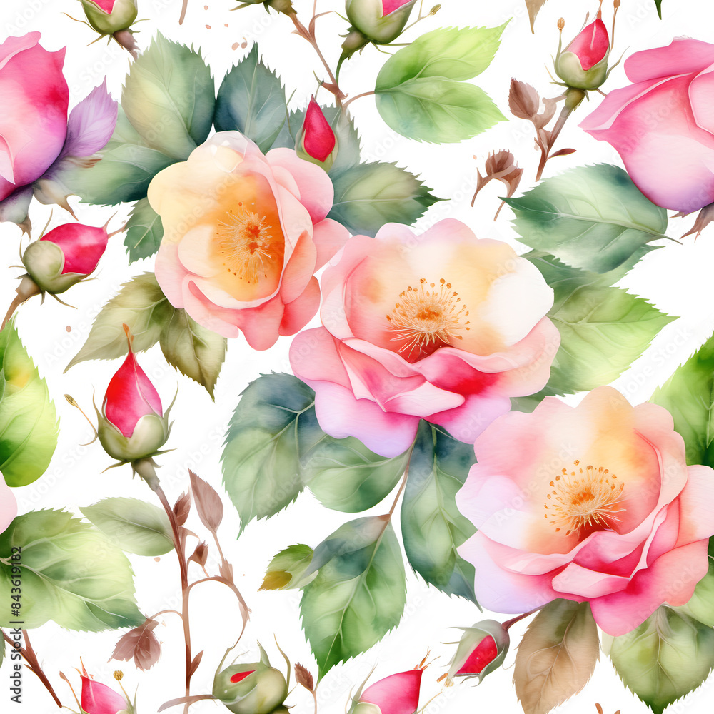 Seamless Pattern With Watercolor Rosehip Flowers On A Wallpaper Mural - Decorly Solutions | Decorly Solutions