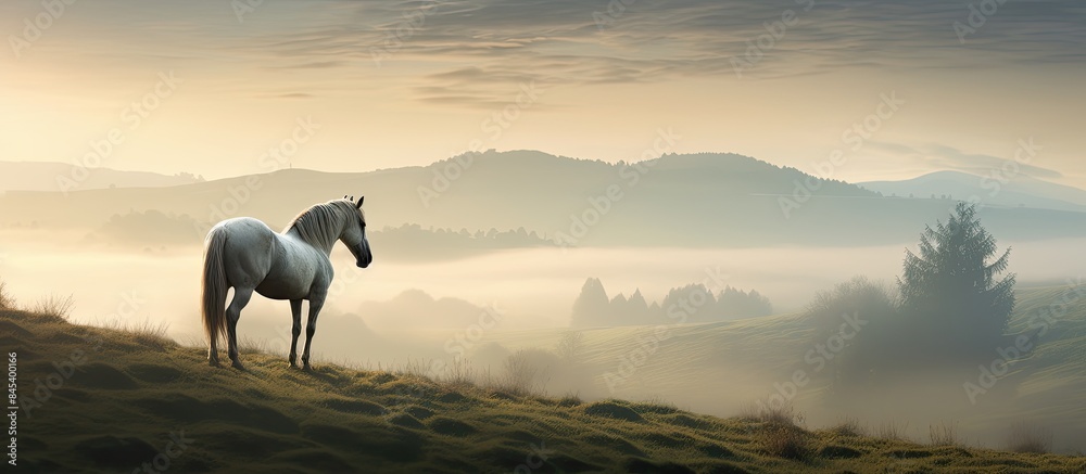 Grey Horse On A Hill With The Evening Wallpaper Mural - Decorly Solutions | Decorly Solutions