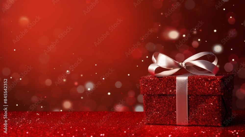 Festive Red Glitter Gift Box On Sparkling Background Wallpaper Mural - Decorly Solutions | Decorly Solutions