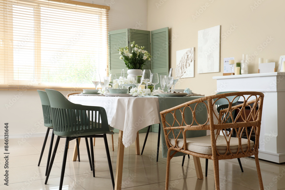 Beautiful Table Setting With White Flowers For Wedding Wallpaper Mural - Decorly Solutions | Decorly Solutions