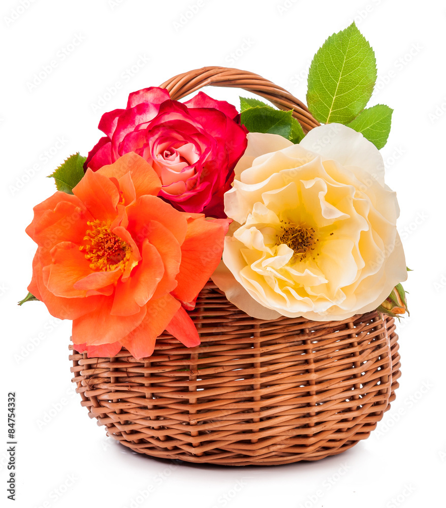 Shrub Roses In Basket Isolated Wallpaper Mural - Decorly Solutions | Decorly Solutions