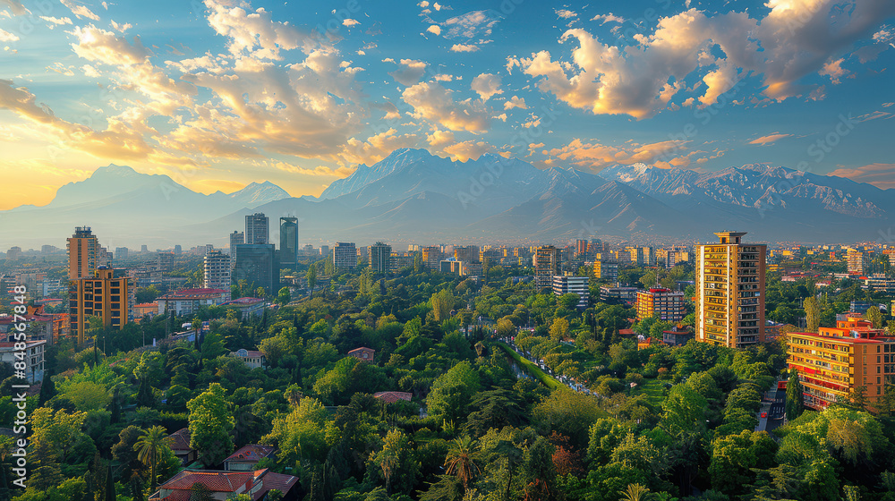 Urban Cityscape with Skyscrapers and Greenery
