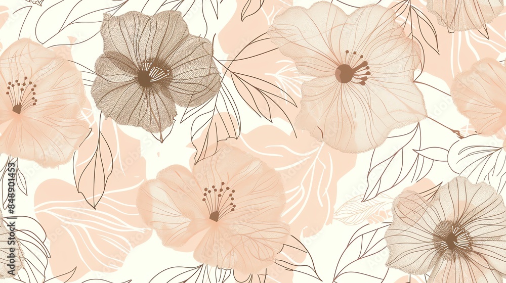 Soft Pastel Light Pink Cream And Brown Flora Wallpaper Mural - Decorly Solutions | Decorly Solutions