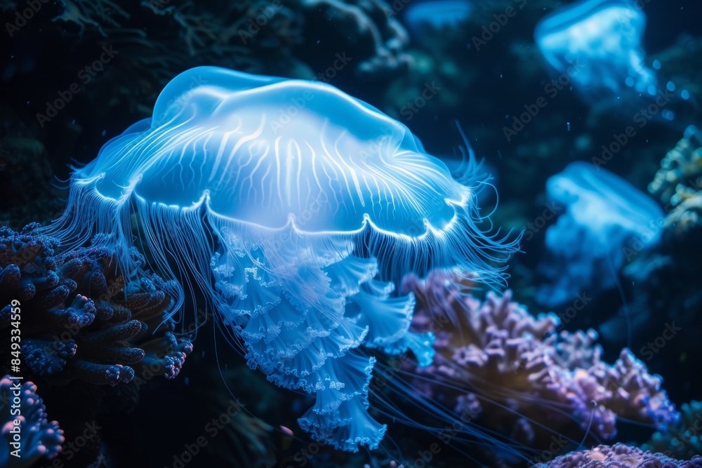 Ethereal Jellyfish Gliding Through a Vibrant Coral Reef