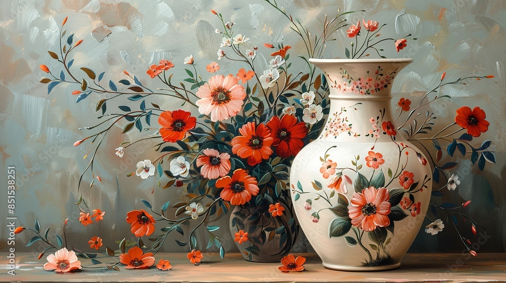 Hand-painted Floral Motifs Adorning A Ceramic Vase Capturing Wallpaper Mural - Decorly Solutions | Decorly Solutions
