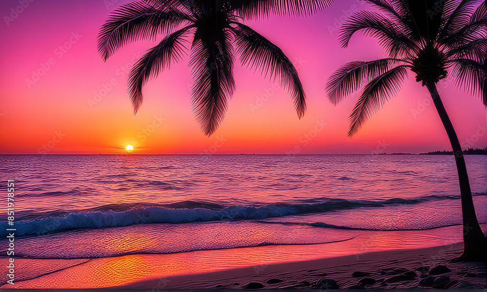 Silhouette Of Palm Trees Against A Summer Sunset Wallpaper Mural - Decorly Solutions | Decorly Solutions