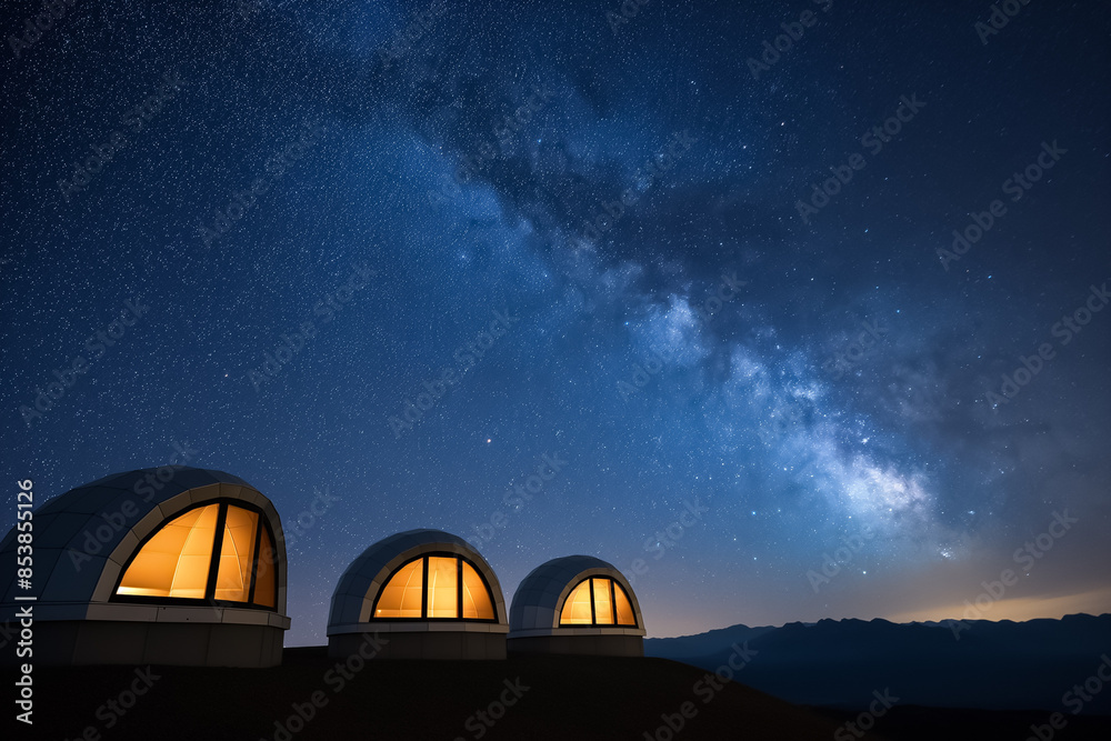 Futuristic Observatory At Night, Glowing Under Starry Sky.