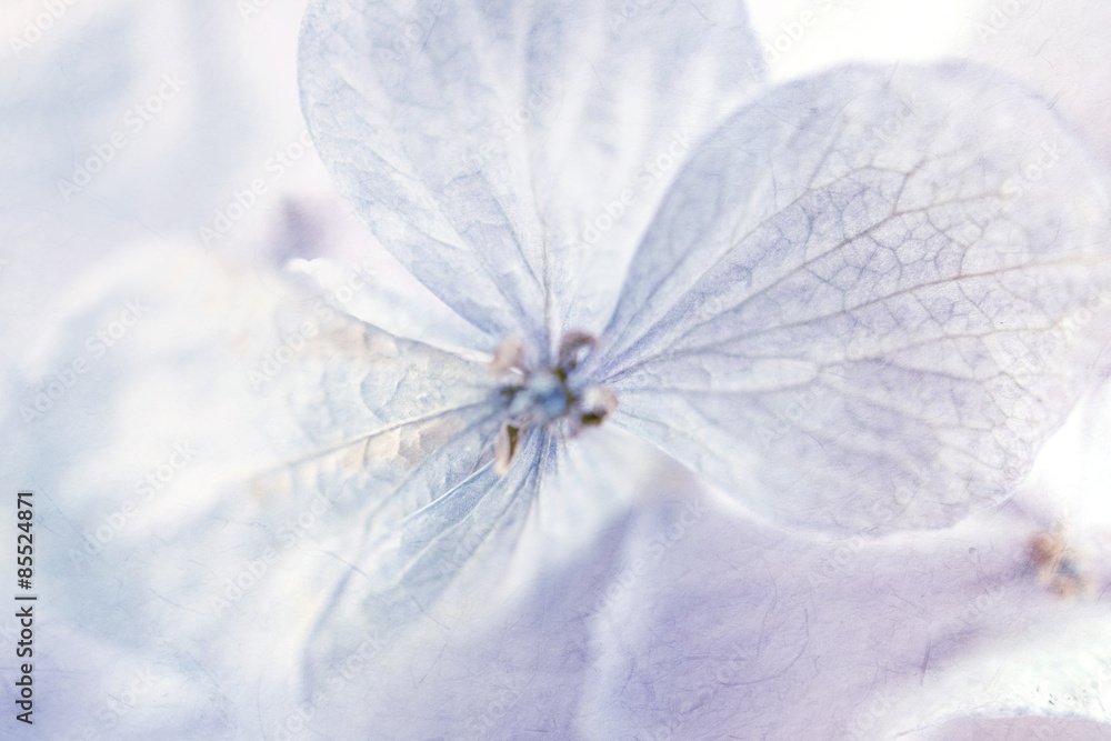 A detailed macro shot of a Hydrangea Macrophylla flower, revealing its intricate patterns and textures