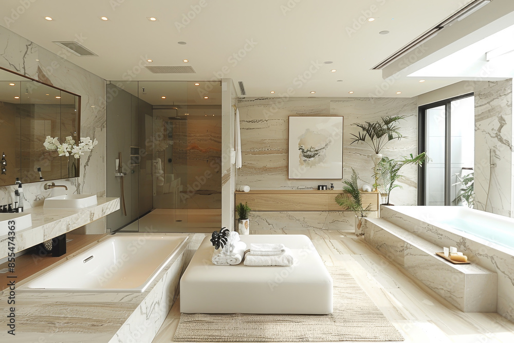 Modern Bathroom With A Large Mirror And Stylish Wallpaper Mural - Decorly Solutions | Decorly Solutions
