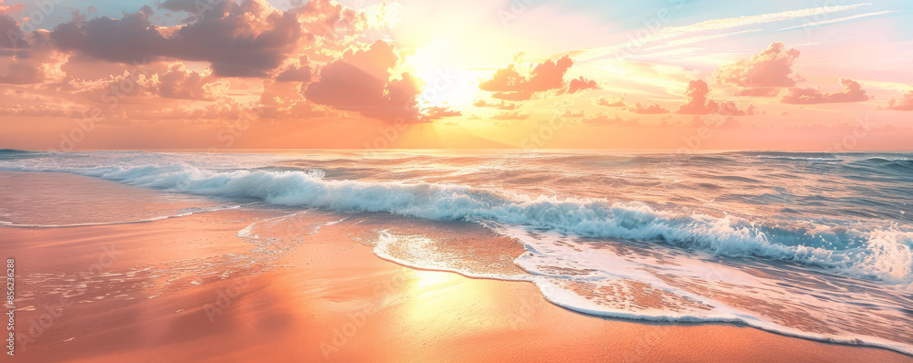 A Serene Beach Sunset Background With Warm Orange Wallpaper Mural - Decorly Solutions | Decorly Solutions