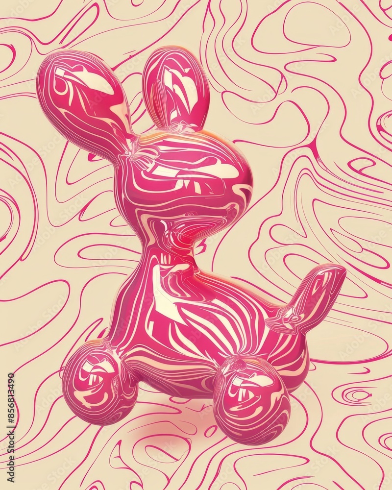 A Pink Glossy Dog With Swirling Patterns Floats Wallpaper Mural - Decorly Solutions | Decorly Solutions