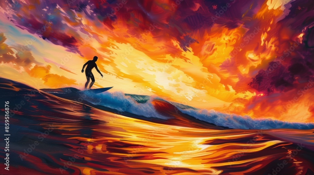 Surfer Gliding At Sunset Dramatic Ocean Wave Silhouette Wallpaper Mural - Decorly Solutions | Decorly Solutions